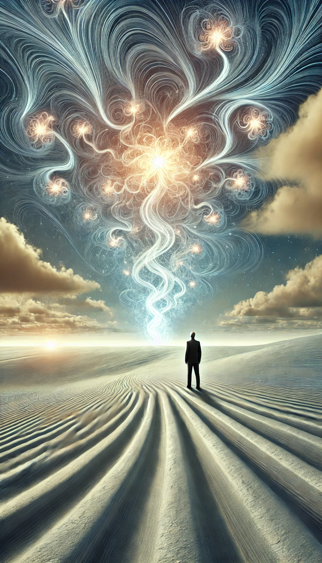 1 Introduction - DALL·E 2025-03-13 08.15.16 - A surreal, long-format image depicting a lone figure standing in a vast, dreamlike landscape. The figure's head is open, with tendrils of thought—glow.webp